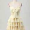 Light Yellow Strapless Tiered Ruffle A-Line Homecoming Dress